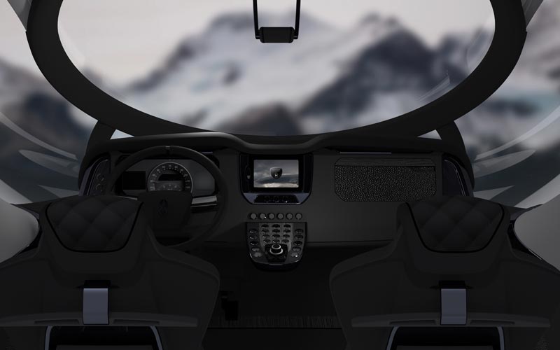 Schon das Design des Führerhauses scheint seiner Zeit voraus – erbaut mit höchster Präzision aus einer speziellen Hochleistungs-Kohlefaser. Designlinien und 36 Zoll Felgenabdeckungen nehmen Anleihe von aktuellsten Rennfahrzeugen. Das Cockpit mit dem Zentraldisplay und MMI Bedienung ist inspiriert vom Flugzeugcockpit-Design, verbunden mit dem Bedienkomfort von Luxuslimousinen.