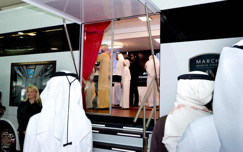 Alle Fahrzeuge können komplett eigenständig betrieben werden. Stromzufuhr, Klimatisierung, Heizung und fließendes Wasser sind vorinstalliert an Bord. Das Raumkonzept wird auf Ihre Bedürfnisse und Corporate Identity zugeschnitten. Der Marchi Mobile Remote Service bietet absolute Sicherheit: 24 Stunden und 7 Tage die Woche weltweiten Zugang unserer Service Mitarbeiter bei technischen Problemen. Erfinden Sie Ihren Store neu. Ein Shop, eine Corporate Identity, eine Million Standorte!